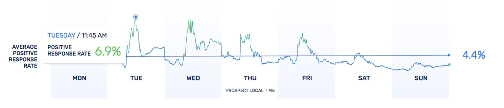 It is easy to test and optimize different aspects of your delivery and messaging. Your templates can be easily A/B tested to see which subject line, format, and sequence works best. Even optimizing the time of delivery can have a big effect on the response rate. Different targets have different habits when it comes to positively responding to your emails. Take the example of this prospect: